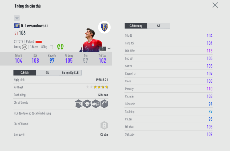 Thêm một cầu thủ mùa giải 21TY nữa được người Thái ưa dùng. Tất nhiên đây kén người dùng, nếu bạn không phải fan hâm mộ thì cần có lối đá chắc tay mới có thể phát huy hết khả năng của tiền đạo người Ba Lan