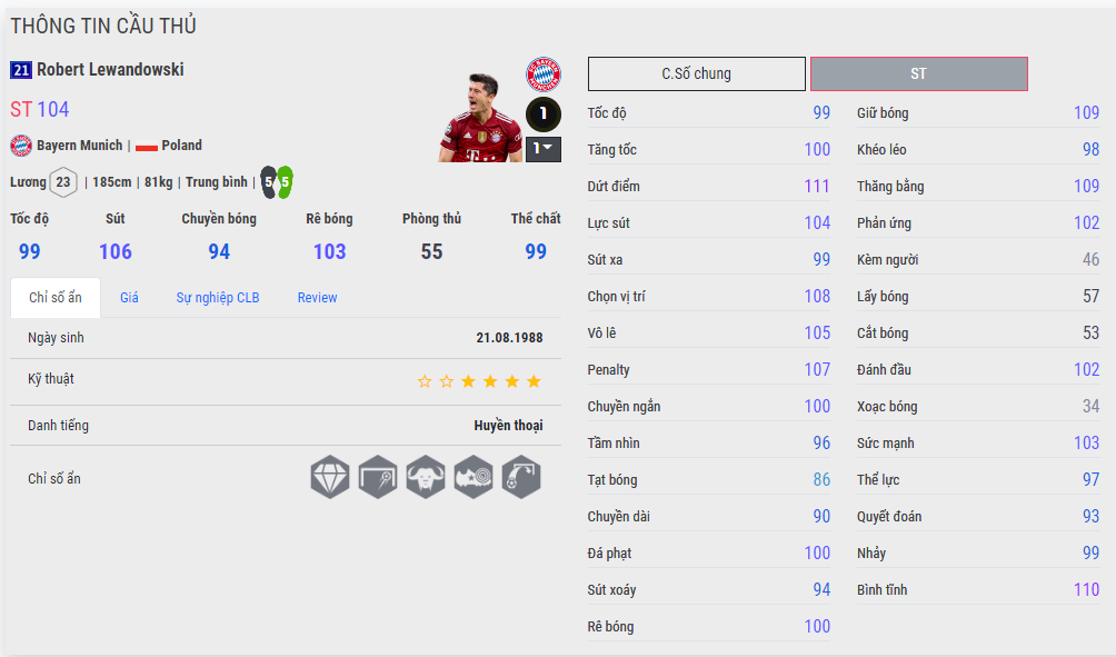 Lewandowski là tiền đạo quốc dân của game, có rất nhiều mùa giải hay nhưng không phải mùa nào cũng là một chuyên gia không chiến đánh đầu mạnh theo đúng nghĩa. 20UCL giờ đây là lựa chọn hàng đầu cho bạn nào thích tacadada