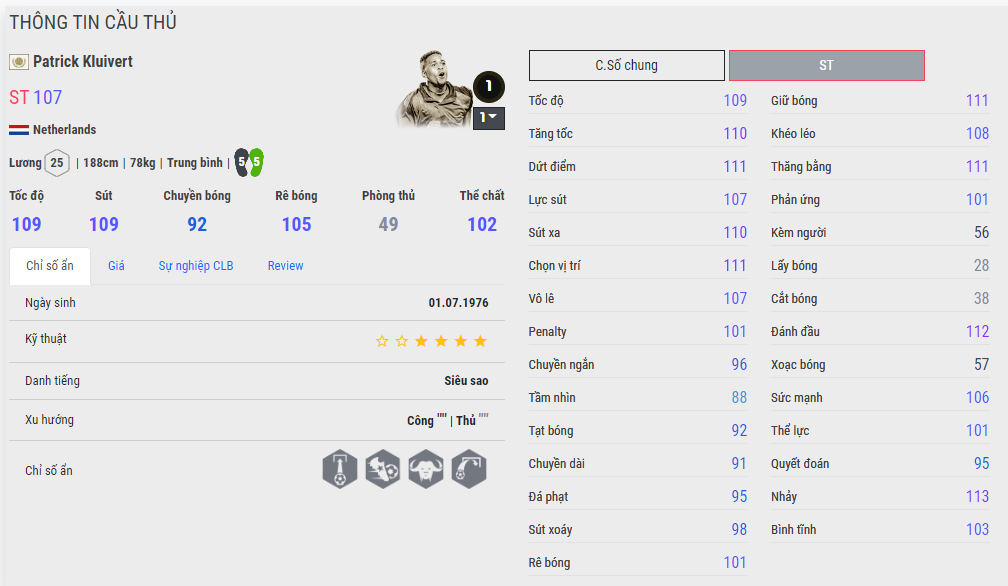Mạnh mẽ, cao lớn và đặc biệt chơi đầu cực giỏi, khả năng không chiến của Kluivert chưa bao giờ phải bàn cãi. Kluivert ICON ở Fo4 chưa bao giờ được đánh giá cao dưới mặt đất nhưng ở trên không thì tất cả phải dè chừng, chiều cao 1m88 cùng khả năng bật nhảy cực cao khiến Kluivert chính là hung thần của mọi đội hình