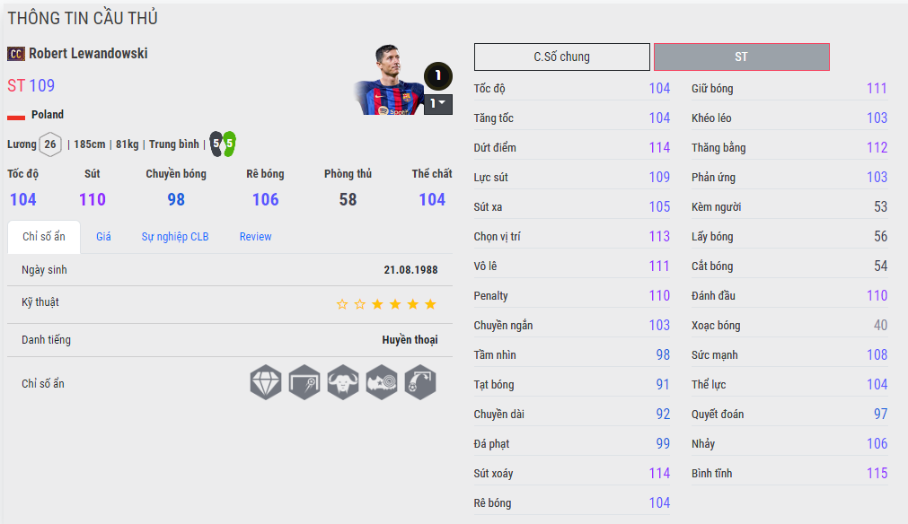 Lewandowski vẫn là chân sút hay miễn chê nhưng tốc độ hơi chậm của anh này là một trở ngại khá lớn với đa phần người chơi, giờ đây các HLV thích chọn những tiền đạo có khả năng tác chiến độc lập tốt với các tình huống chọc khe băng xuống hơn là cố gắng tìm cách đan bóng vào vòng cấm của đối phương, và nó vô tình làm độ hot của Lewandowski giảm xuống.