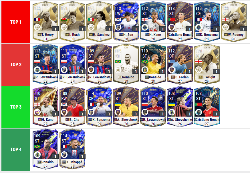 Tháng 10/2023 chứng kiến sự thay đổi về gameplay, khi những cải thiện từ tháng 9 do FIFA Online 4 đổi tên thành FC Online lúc này mới được những người chơi làm quen và thành thục hơn. Về cơ bản những cầu thủ top đầu game vẫn là những cái tên quen thuộc như Henry, I. Rush, Ronaldo hay Lewandowski...