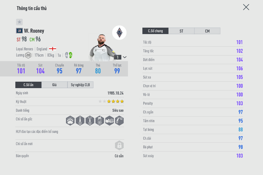 Có hai mùa giải của Rooney đá ST cực hay là LH và VTR. Các bạn có thể xem bài đánh giá về các mùa giải của Rooney trên fo4vn ( review ). Dẫu VTR cho thấy một sát thủ thực sự trong khâu ghi bàn. Với tỷ lệ chuyển hóa bàn thắng lên tới hơn 60% so với 40% của LH. Nhưng mùa LH lại cho một Rooney toàn diện hơn về các mặt.