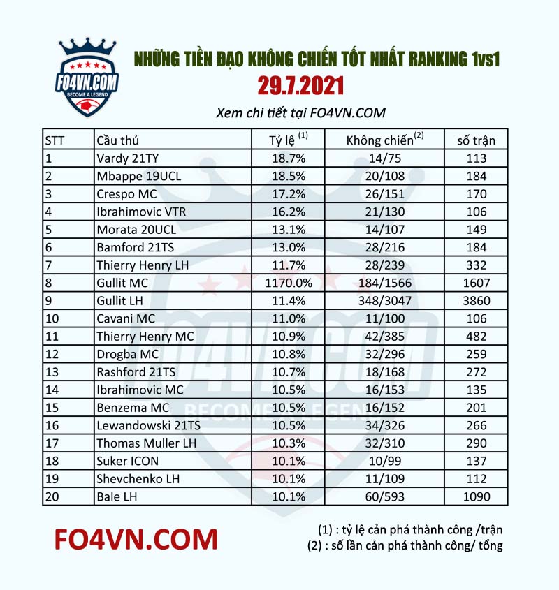 Hiện tại thì việc không chiến của các tiền đạo đã được cải thiện hơn trước đó rất nhiều. Gameplay 6.0 yêu cầu bạn cần có một chân tạt bóng thật chuẩn và một tiền đạo biết chơi đầu tốt, cũng như chọn điểm rơi hoàn hảo. Dưới đây là những cái tên mà có thể bạn tham khảo khi chọn cho mình lối chơi tacadada