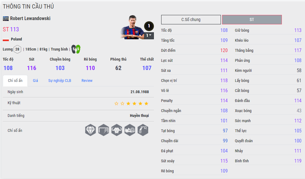 Lewandowski có 3 team color rất mạnh là Dortmund, Bayern Munich và Barcelona... Hiện tại thì team Bayern Munich của cầu thủ này vẫn là số 1, nhất là sau khi có sự góp mặt của Harry Kane.