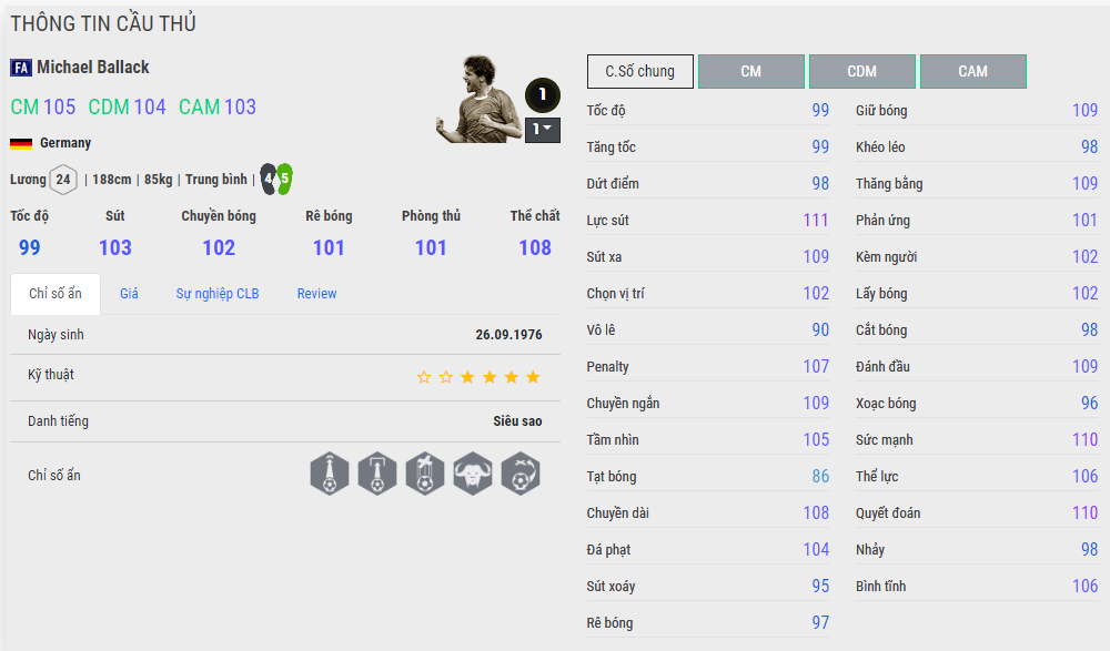 Đây là phiên bản có thể coi là phiên bản ổn nhất của Ballack khi đá vị trí CDM, với AI cắt bóng tốt nhất, mức lương vừa phải là khả năng điều phối bóng cũng cực kỳ ổn định. So với các phiên bản khác như LH, BTB hay CAP thì mùa FA có thánh chuyền bóng và vẫn giữ được thể hình trung bình. Trong khi đó mùa CAP có cùng chỉ số ẩn nhưng có thể hình sức khỏe làm cho xoay xở tương đối hơi chậm lại.