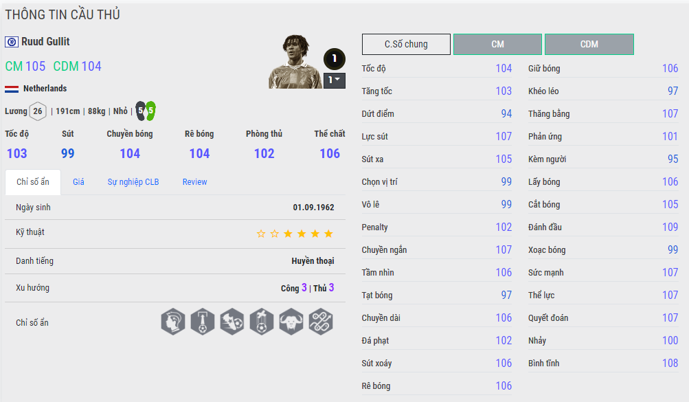 Có rất nhiều phiên bản của Gullit có thể chơi ở vị trí CDM, tùy vào kinh tế mà bạn có chọn lựa cho phù hợp. Đa phần Gullit đều toàn diện và có thể chơi bao sân rất tốt với tốc độ và thể hình của mình. Tuy nhiên xét ở mặt trận phòng ngự thì cầu thủ huyền thoại người Hà Lan thường cắt bóng khá ít và chủ yếu dùng lợi thế về thể hình để tranh bóng là chính. Dù vậy điều này cũng gây ra không ít khó chịu cho đối phương và chắc chắn phá lối chơi của họ.