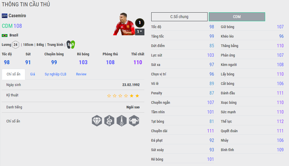 Nhưng bù lại thì khả năng phòng ngự của Casemiro 23TY là cực ổn với AI cắt bóng và khả năng đánh chặn rất ổn. Thi thoảng thì anh chàng cũng có vài tình huống sút xa thành bàn gỡ thế bí, nhưng tựu chung thì khả năng hỗ trợ tấn công vẫn khá thấp.