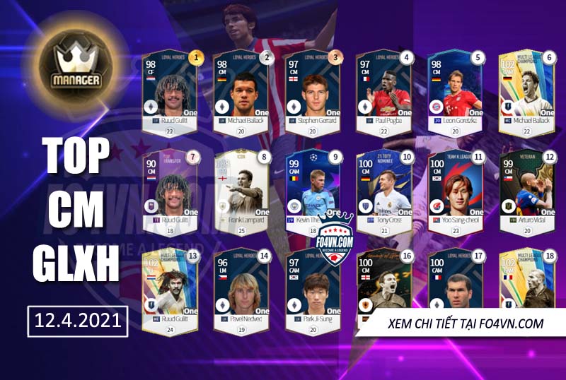 Những tiền vệ nào được dùng nhiều nhất trong chế độ GLXH. Mời các bạn đến với danh sách dưới đây.