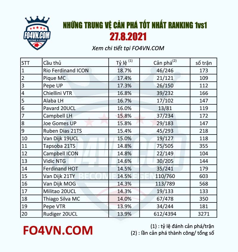 - Trong khi đó Rudiger 20UCL chỉ xếp ở thứ hạng 20. Tuy nhiên chừng đó là đã đủ để đứng trên hàng tá hậu vệ trong game rồi.