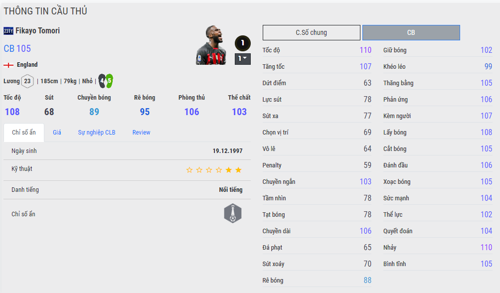 Tomori được đánh giá là trung vệ nhanh và triển vọng nhất hiện nay của FIFA Online 4, Ai của cầu thủ này hay và vẫn đang được phát triển thêm nữa, mặc dù hạn chế ở thể hình gầy và cân nặng hơi nhẹ so với yêu cầu của phần đông các HLV, nhưng sự thích hợp với đa dạng chiến thuật lại là thế mạnh của Tomori. Chơi trung vệ người Anh bạn có thể chơi bắt bài cũng được, chơi áp sát cũng được hay thậm chí là lao cả người vào đối thủ cũng được nốt. Một mẫu trung vệ mà ai ai cũng có thể dùng được.