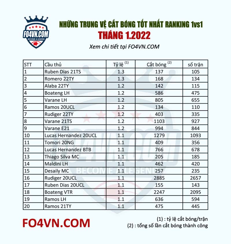 Meta 7.0 những hậu vệ lao lên đánh chặn đã không còn theo kịp với meta của game, giờ đây người ta quan trọng nhất là khả năng cắt bóng, nhất là những đường chọc khe của đối thủ, vậy đâu là những cái tên xuất sắc nhất tháng 1.