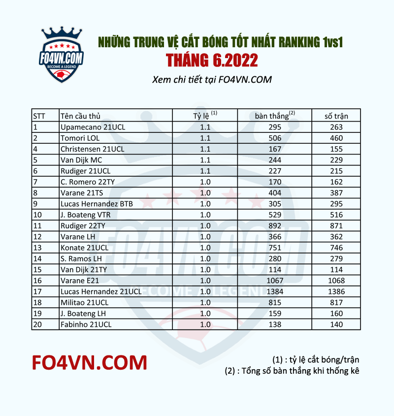 Trước khi mùa giải 22TS đổ bộ với hàng loạt những cái tên đình đám mới, tháng 6 có thể sẽ là lần cuối chúng ta thấy những Boateng LH hay Varane LH có cơ hội lọt vào top các trung vệ cắt bóng hay nhất