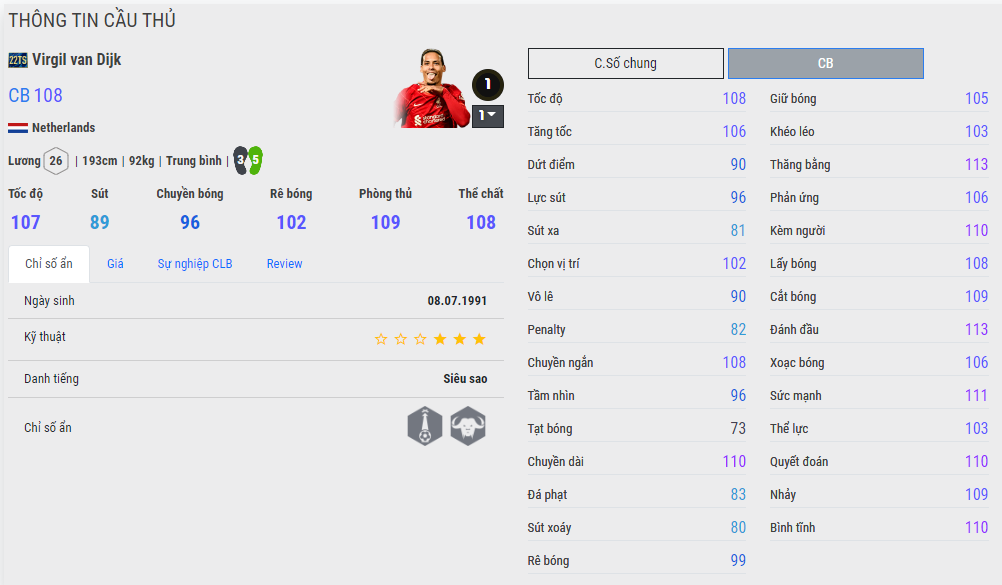 Trung vệ có chỉ số cao ngất ngưởng của mùa 22TS, sự trở lại đầy thuyết phục của Van Dijk sau thời gian dài chấn thương. Anh là nhân tố chủ đạo giúp cho hàng thủ của Liverpool luôn đứng vững trước các đợt tấn công của đối thủ. Điểm mạnh của Van Dijk chinh là ở tư duy chơi bóng luôn biết dùng sức đúng lúc, và can thiệp cực tinh tế.
