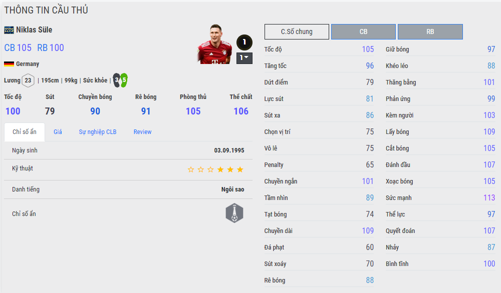 Hậu vệ người Đức có một thể hình khổng lồ trong game với cân nặng lên tới 99kg, điều quan trọng là to nhưng Sule không hề chậm chạp một chút nào. thay vào đó cầu thủ này lại khá nhanh nhẹn vào xoay sở tốt. Sule có khả năng cắt bóng và đánh chặn cực tốt trong meta hiện tại. Một trung vệ mà bạn không nên bỏ qua