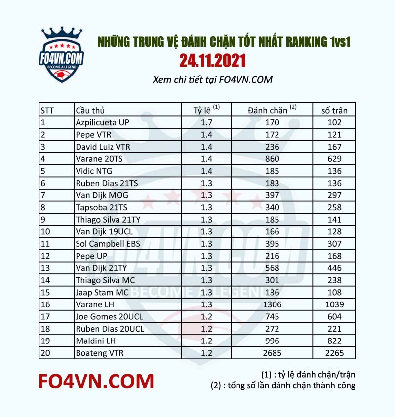 - Những trung vệ được đánh giá về độ xôi thịt ( dập ) vẫn là chủ đạo