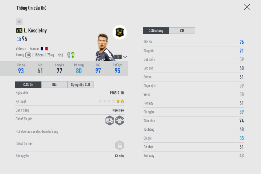 So với các cái tên kể trên thì Kosielny mỏng cơm hơn cả, thể hình cao nhưng gầy và nhẹ cân quá, tất nhiên nhẹ thì nhanh hơn. Bạn có thể tin tưởng vào cầu thủ người Pháp này. Nhưng tốn chất xám nhiều hơn khi tổ chức phòng ngự thôi, vì hạn chế các pha tông húc, hãy tận dụng tốc độ để phán đoán và đưa ra những pha tackle bóng chuẩn xác đúng thời điểm.
