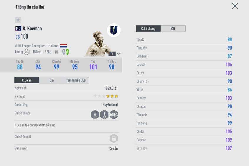 Nếu bạn có đủ tài chính, hãy sắm mùa ICON. còn không hãy mua MC. Tuy vậy điểm yếu của Koeman MC là không chiến tệ cùng với đó là khả năng cản phá khá thấp, do thường xuyên dâng cao. Có vẻ như Koeman hợp với CDM hơn.