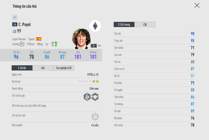 Mùa giải LH là mùa giải mà Puyol không thọt bóng bổng, cùng với AI phòng ngự không hề kém cạnh bất cứ cái tên nào. Bạn hoàn toàn có thể cho cặp đôi Puyol và Blanc đá cặp với nhau.