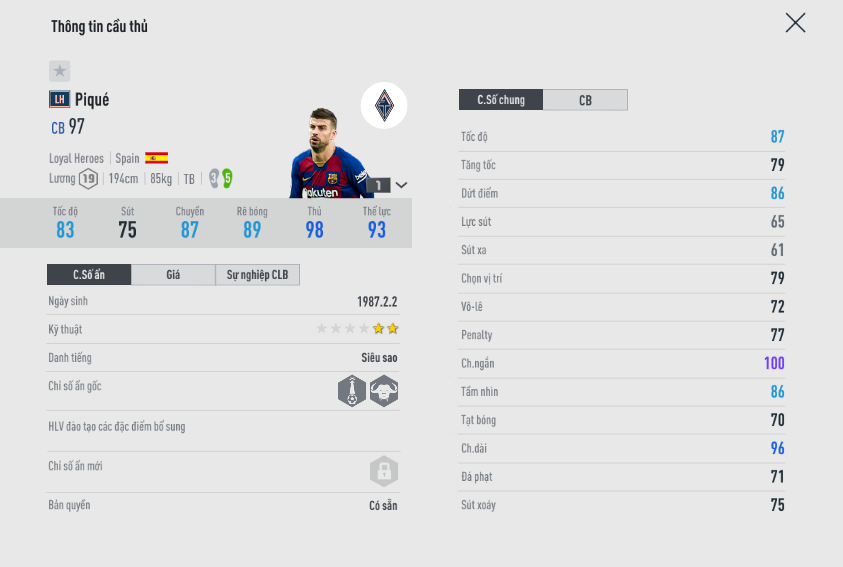 Trung vệ đương đại của Barca, có xải chân dài cùng với khả năng phòng ngự cực tốt. Điểm yếu tốc độ cố hữu. Dẫu vậy khả năng chống bỏng bổng của Pique là tốt nhất, khả năng cản phá chỉ đứng sau Blanc. Chơi Pique bạn cần cẩn trọng và phán đoán tình huống nhiều hơn một chút, vì xu hướng của anh khá dở là công 3 thủ 2.
