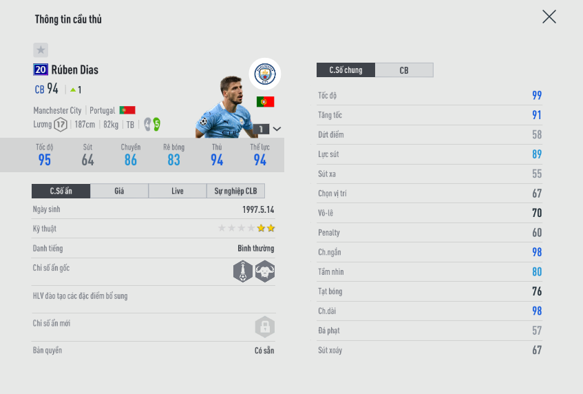 Cầu thủ này đã được Fo4vn review và đây là một trung vệ cực chất lượng về cả thể hình lẫn tốc độ. Rất phù hợp với meta hiện tại. Đặc biệt khi mà MC đã vượt qua Dortmund để có mặt tại bán kết C1 mùa giải năm nay. Đây là cái tên không thể thiếu nếu bạn xây dựng team Bồ Đào Nha