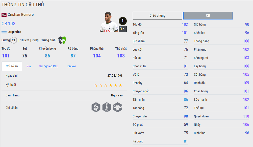 Cầu thủ hiện được mọi người nói rằng đá bằng cái tên, bất chấp mùa giải và bất chấp chỉ số phong độ. Nhưng quả thực là Rudiger WC22 ngon thật chứ không phải hàng chỉ có hư danh. Tuy nhiên khâu không chiến của cầu thủ này có đôi chút vấn đề mà bạn cần hết sức chú ý khi sử dụng. Còn dưới đất thì anh này đúng là một máy quét cực khủng.