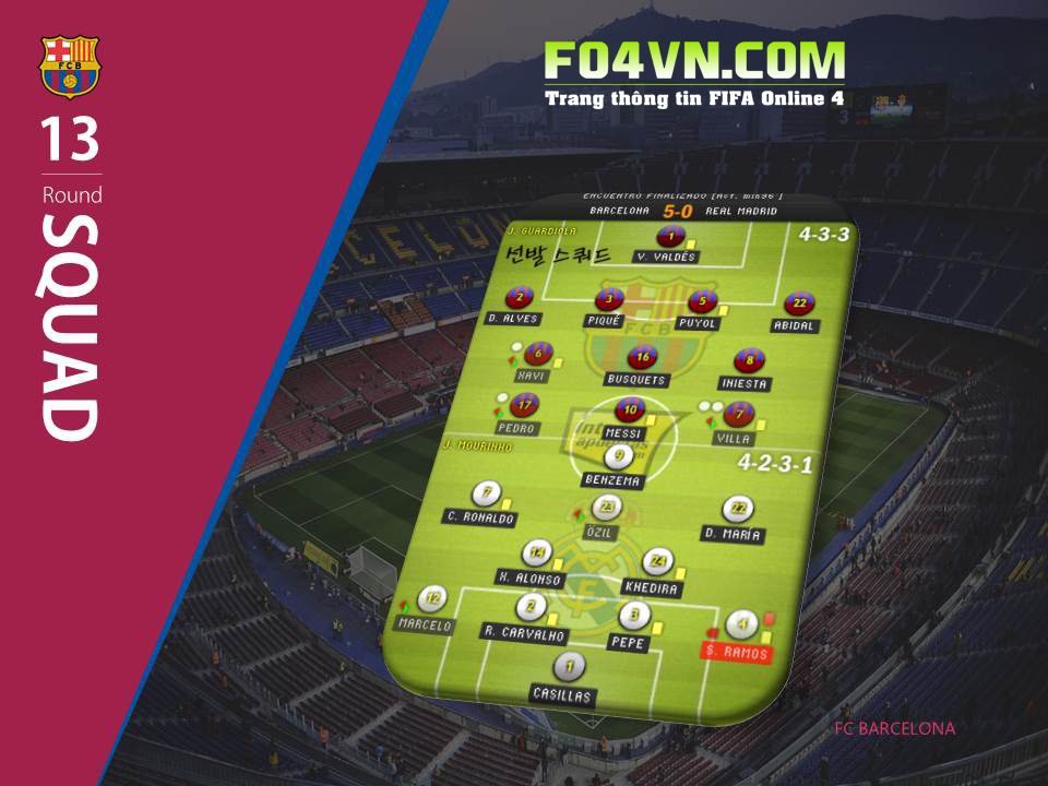 Hình ảnh bên dưới chính là sơ đồ chiến thuật của Barca trong trận thắng Real 5-0. Một trong những chiến thắng áp đảo hoàn toàn. Có thể thấy sơ đồ mà Barcelona sử dụng là sơ đồ 4-3-3 truyền thống, với bộ 3 tiền vệ có 2 tiền vệ trung tâm và 1 tiền vệ phòng ngự thu hồi bóng.