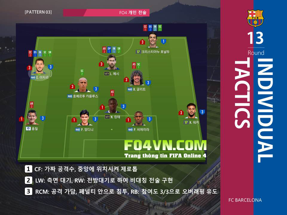 RCM : Xu hướng chơi 3-3 cùng với AS2 để luôn tấn công và SC1 để di chuyển bó vào vòng cấm mỗi khi vị trí cánh tạt bóng.