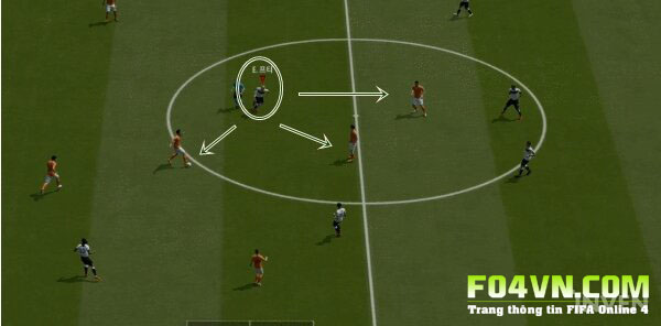 Chuyển con trỏ về phía tiền vệ phòng ngự và di chuyển
