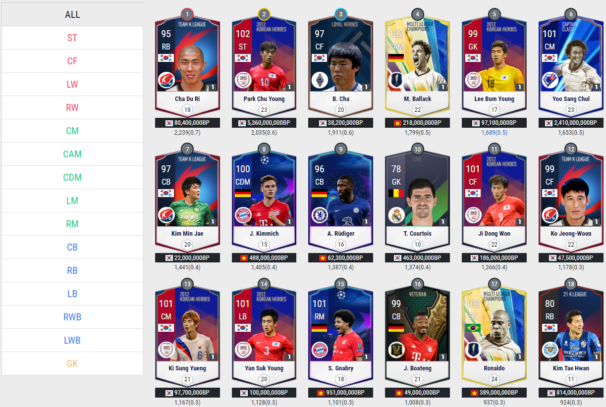 Mới đây thì trang tra cứu thông tin cầu thủ lại tiếp tục cập nhật một tính năng khá hay dành cho những người đam mê bộ môn GLXH. Đó chính là người chơi có thể chỉ bằng vài ba cú click chuột sẽ có ngay danh sách các cầu thủ được nhiều người sử dụng cho chế độ này. Ví dụ như hình dưới đây là các cầu thủ của mùa giải 19UCL