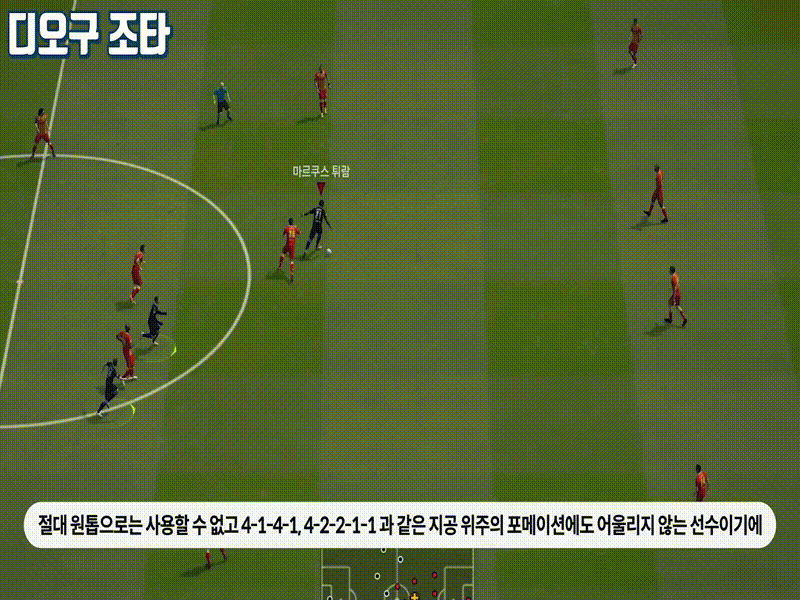 Một điểm sáng là Jota rất nhạy trong việc di chuyển, tích cực tham gia xâm nhập vòng cấm chứ không hề lười di chuyển. Thẻ game đề xuất vị trí tốt nhất là hộ công CF. Đây cũng là một vị trí mà bạn sẽ phát huy hết sở trường của anh. Nếu có một tiền đạo làm tường tốt