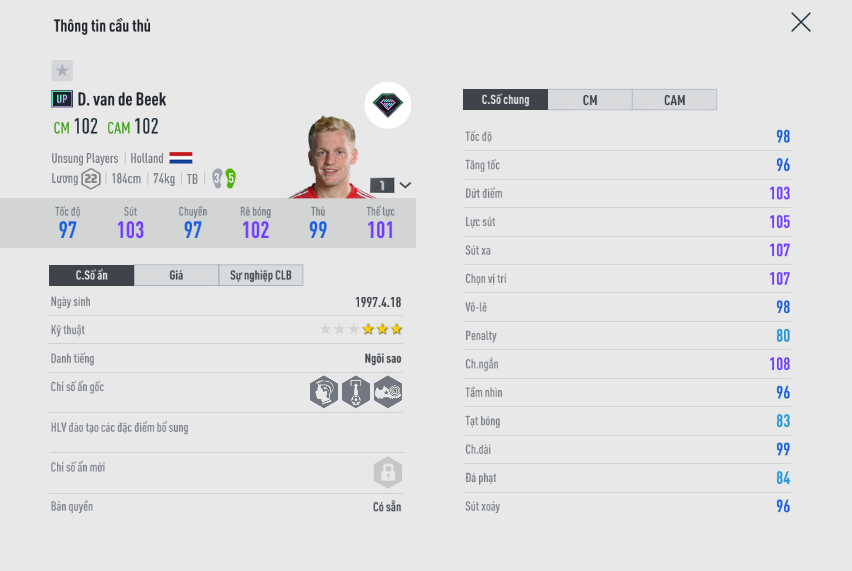 Cao 1m84 chiều cao khá lý tưởng, Beek khá lý đò, không rõ có phải đang buff do thẻ mới ra hay không nhưng có thể nói là Beek đánh đấm cũng rất nhiệt.