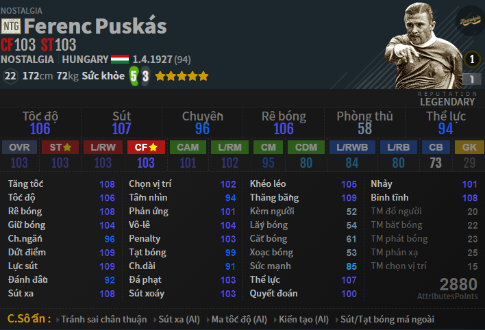 Một trong những cầu thủ hot của mùa NTG là Puskas, huyền thoại của Real ở thế kỷ trước, khi mà mùa giải ICON của ông có mức giá quá cao thì NTG là một lựa chọn không tồi cho anh em cày chay.