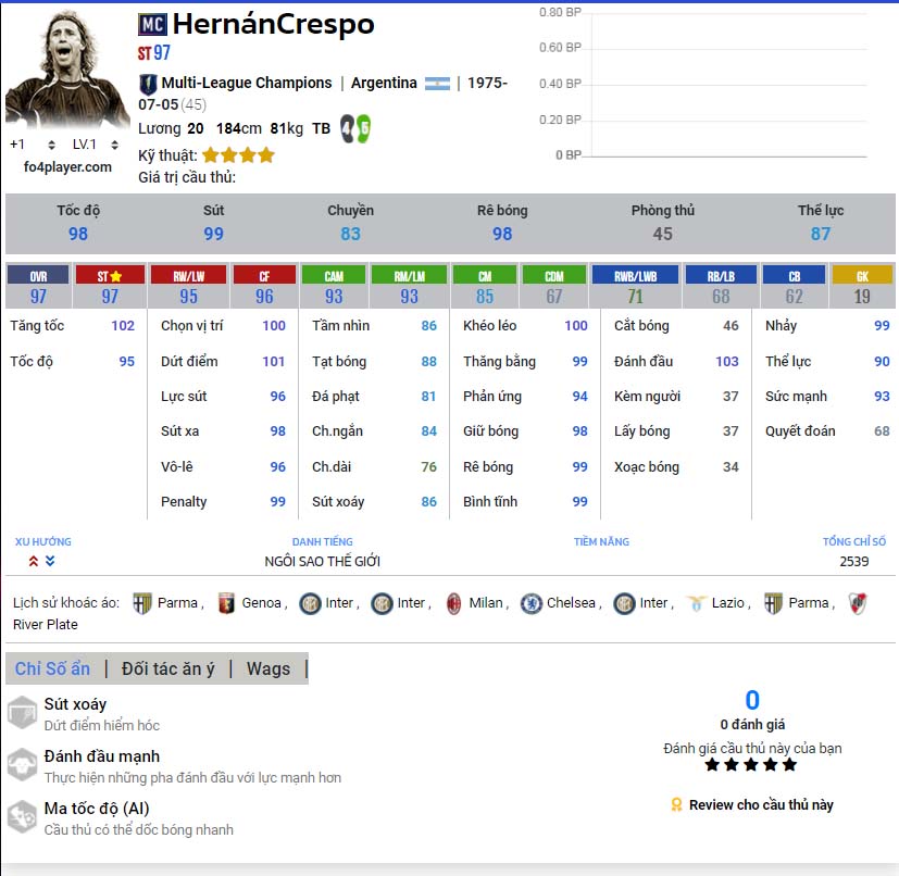 Hernan Crespo cựu tiền đạo của Chelsea và đội tuyển Argentina đã có một cuộc lột xác thực sự ở tựa game FO4, khi anh luôn được xếp vào trong những tiền đạo cự phách của game. Tuy nhiên cứ mỗi một mùa giải mới ra thì người chơi lại thêm một lần đau đầu về việc nên lựa chọn mùa giải nào để sử dụng anh. Fo4vn xin gửi tới các bạn những đánh giá mới nhất về mùa giải MC của anh ở trong game hiện tại. Và liệu rằng nên chọn MC hay HOT +5.