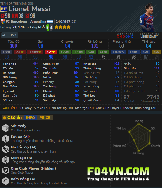 L.Messi - Chỉ số trong game