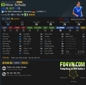 Nico Schulz chắc hẳn là một cái tên khá lạ lẫm với đại đa số người chơi FIFA Online 4 và người hâm mộ bóng đá. Anh là người Đức, sinh ngày 1 tháng 4 năm 1993 và hiện đang thi đấu cho CLB Hoffenheim. Sự nghiệp chưa có gì nổi trội ngoại trừ việc được gọi lên đội tuyển quốc gia gần đây.