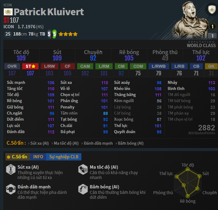 Một cái tên mà rất nhiều người mong chờ chính là Kluivert ICON. Khi mà các mùa giải trước đó của tiền đạo người Hà Lan đều đã làm cho người chơi thất vọng tột cùng, thậm chí coi Kluivert Fo4 là hàng thải. Vậy liệu mùa ICON có làm người chơi cảm thấy thỏa mãn cơn khát của họ về một Kluivert làm mưa làm gió thời Fo3 hay không ?