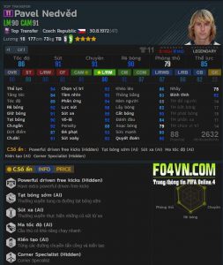 - Di chuyển : Nedved rất chịu khó xâm nhập vòng cấm để dứt điểm. Cộng với khả năng dứt điểm toàn diện cả chân lẫn đầu đã nói ở trên thì đây thực sự là một vũ khí lợi hại cho đội của bạn.