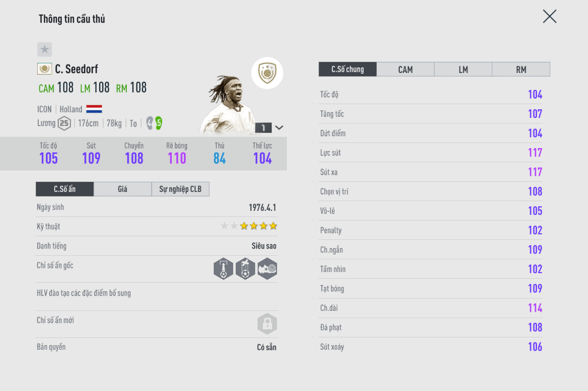 * Tạt bóng: của Seedorf Icon cũng chỉ ở mức khá mình thấy chưa được như chỉ số ghi trên thẻ.