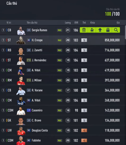 Các thẻ cầu thủ sau khi mở ra