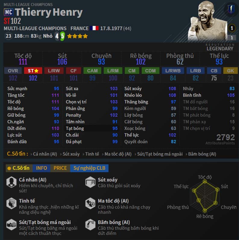 Cuối cùng thì huyền thoại của đội tuyển Pháp và CLB Arsenal cũng có cho mình được một thẻ mùa giải ra tấm ra món. Khác với các mùa giải khác anh chỉ ở mức siêu sao thì với mùa MC, Danh tiếng của anh đã lên tầm huyền thoại.