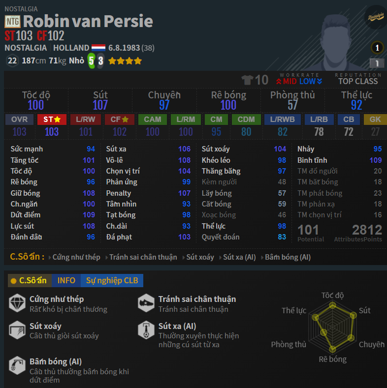 Trên trang web thì mini face của cầu thủ hiện vẫn để trống. Tuy nhiên dàn chỉ số ẩn của Persie và các thuộc tính thành phần đã được định hình. Được biết FIFAaddict là một trang web do người Thái xây dựng, vì thế có thể đã có những thông tin Van Perise NTG được cập nhật tại máy chủ Thái Lan hay chăng. Thời gian gần đây thì người hàng xóm của chúng ta luôn đi trước đón đầu so với Việt Nam.