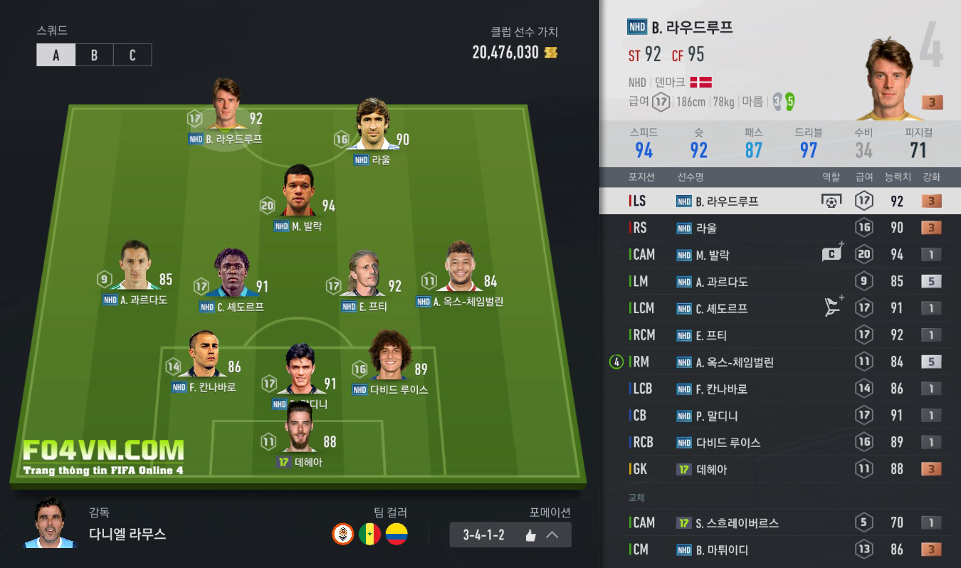 Tổng quát: Tốc độ chơi 75 cho những đợt phản công cũng như tấn công nhanh và tạo nhiều áp lực cho đối thủ. Chuyền 50 để đội hình đứng không quá sát cũng như không quá giãn cho những đường chuyền bóng. Tạo nên sự nhịp nhàng. Xu hướng chơi tổ chức để hạn chế các vị trí di chuyển quá dạt biên hoặc tránh những sự hoán đổi vị trí không cần thiết.