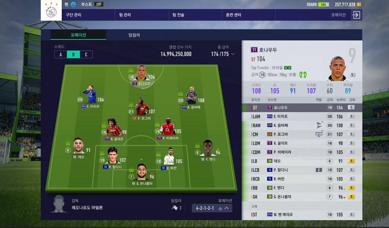 Sơ đồ lối chơi là sơ đồ 4-2-1-2-1 với 1 tiền đạo cấm ST. 2 tiền vệ công LAM, RAM đá thay vị trí RM,LM. Phía dưới là 1 CM đá cùng với 2 CDM. Bộ tứ phòng ngự không có sự thay đổi nào.