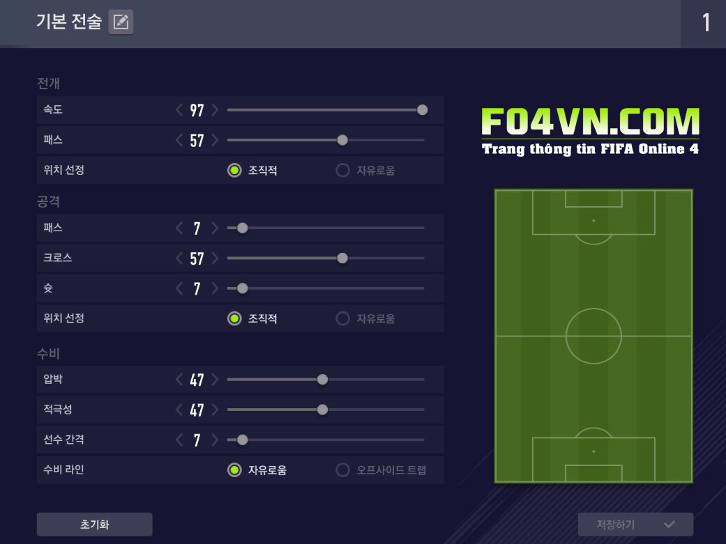 Tốc độ chơi của sơ đồ này nên được đẩy lên cao bởi ưu thế về cả tốc độ lẫn thể lực của mặt bằng chung là rất tốt. Chuyền bóng mức trung bình nhằm đưa cự li của các cầu thủ ở mức vừa phải.