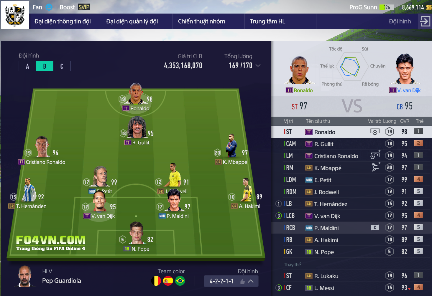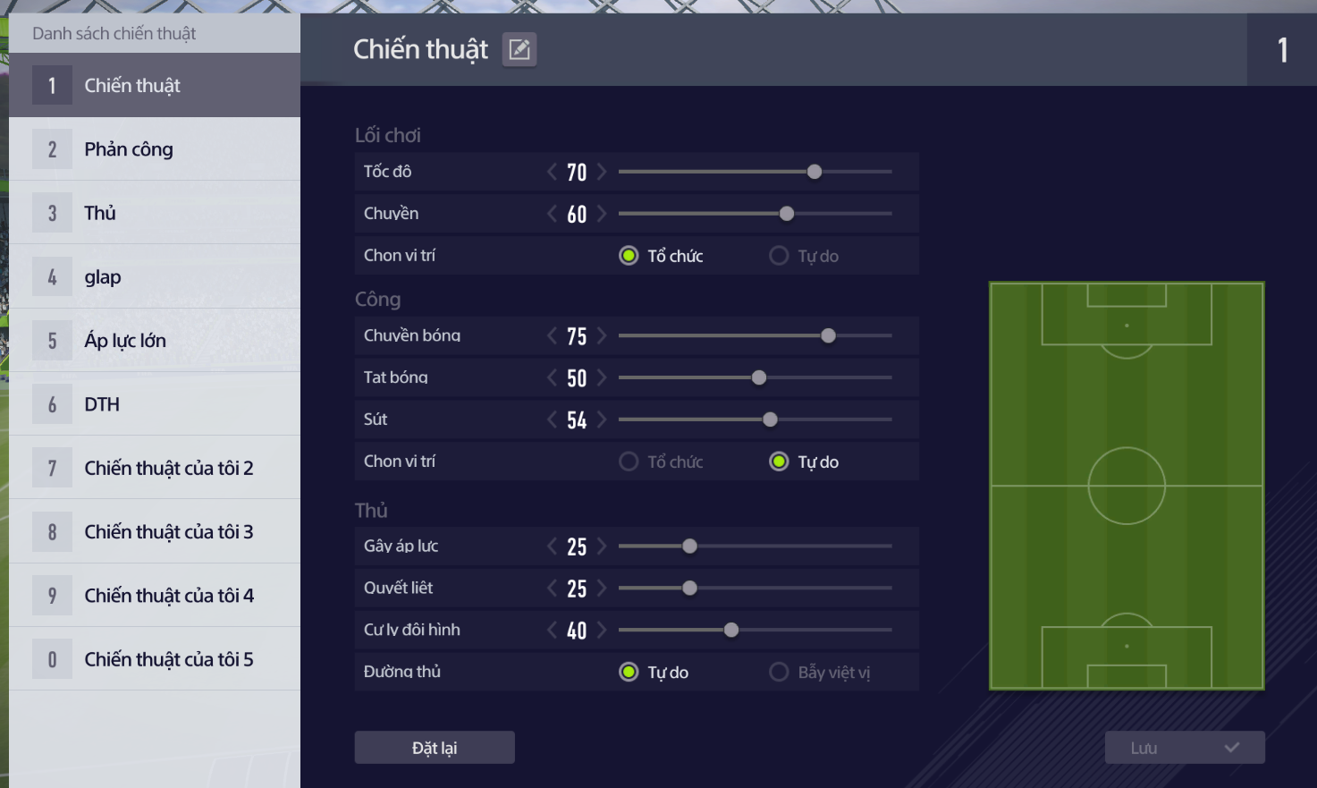 Sơ Đồ Chiến Thuật :4-2-2-1-1 Mặc định của game