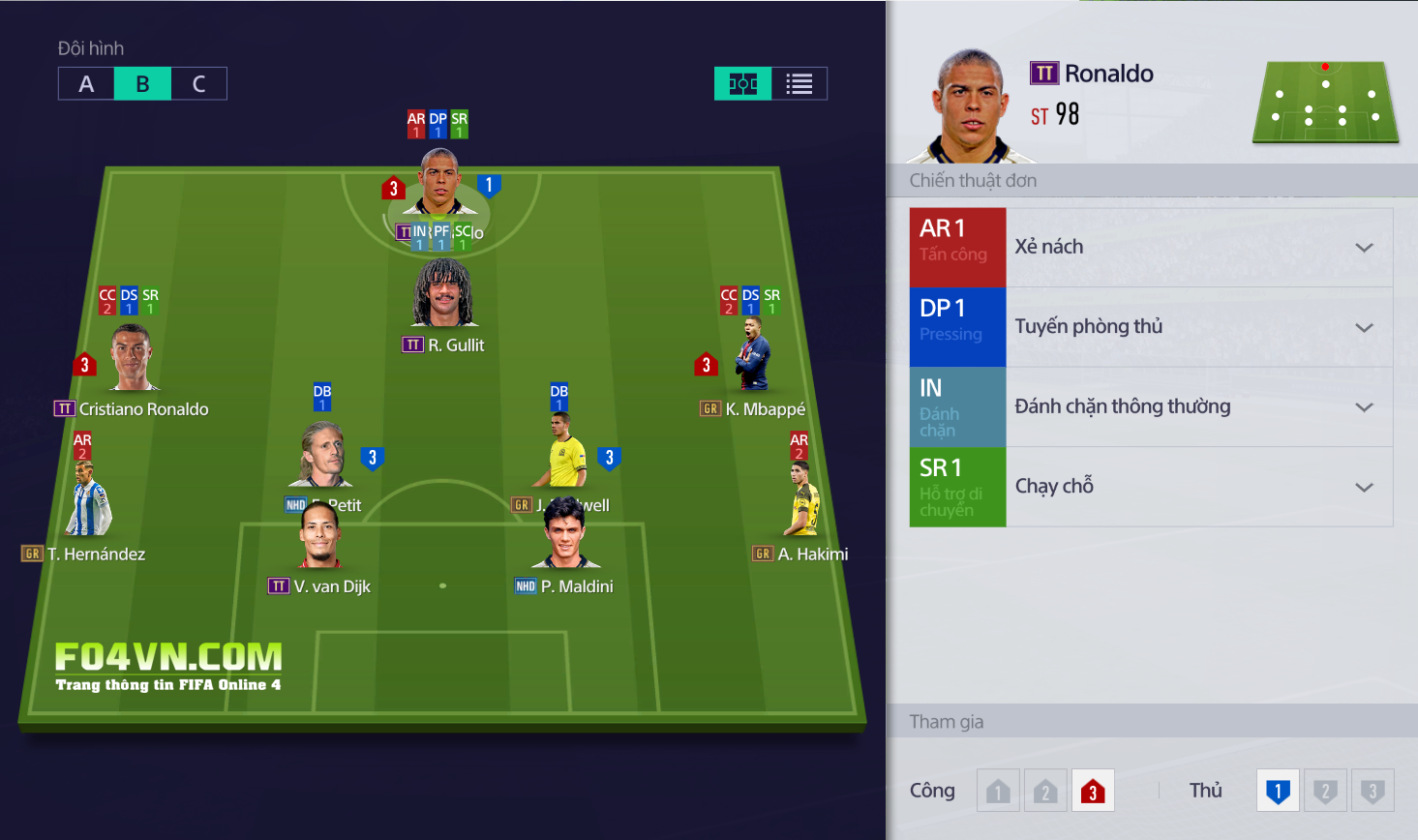 ST: Xu hướng 3-1 AR1 Xẻ Nách, DP 1 Pressing hàng phòng ngự và SR 1 Chạy Chỗ