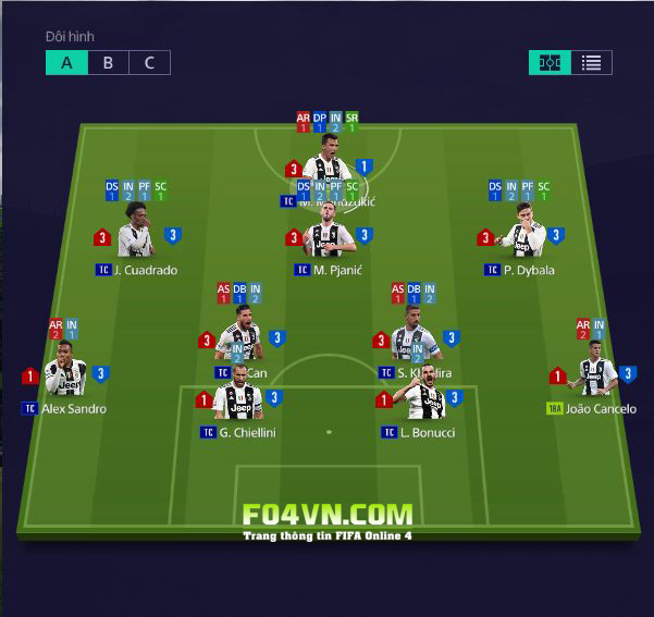 4- LB + RB : LB Alex Sandro đá khá là năng nổ có tốc độ cao và chiều cao trung bình so với mặt bằng chung , chuyền chọt rất ok , luôn có mặt đúng lúc . RB Cancelo do ko có TC nên mình sử dụng mùa 18A , anh này đá tròn vai nhưng đôi khi hơi bị ngáo ngơ , tốc độ không đc nhanh như chỉ số .
