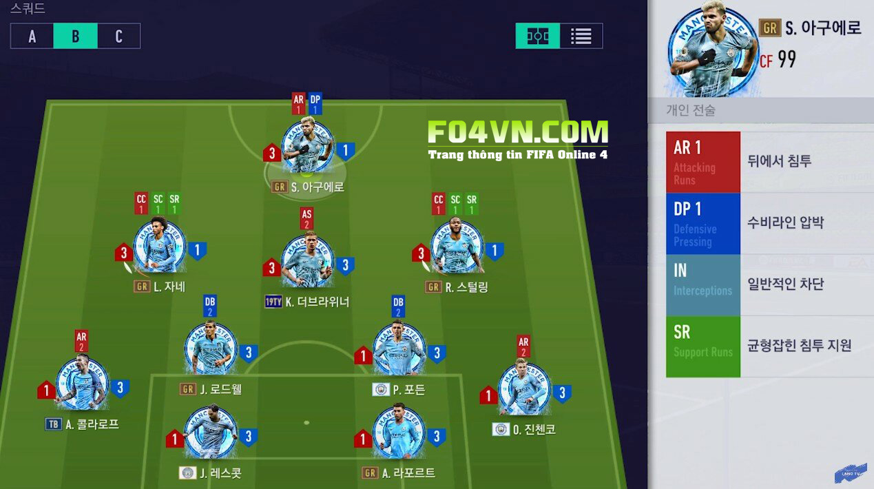 RM,LM : CC1 di chuyển xâm nhập cùng SC1 và SR1 tham gia nhiều vào các tình huống tạt bóng và tấn công cánh. Xu hướng chơi 3-1