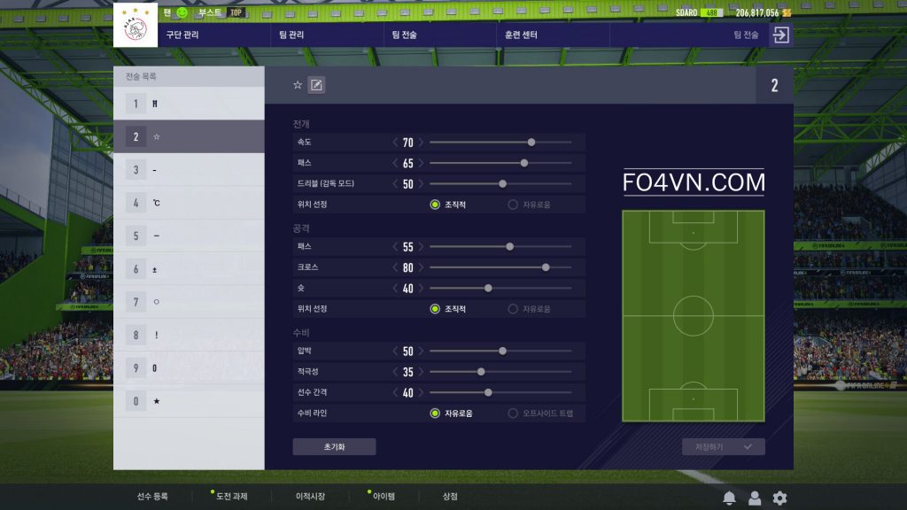 HIện tại trong fo4 thì các sơ đồ hữu dụng đang là 4-2-3-1, 4-1-2-3 và 4-2-1-3. Nhưng nếu như bạn là một người thích trải nghiệm và hoài cổ. Hãy thử vận dụng 4-4-2 dưới đây xem sao.