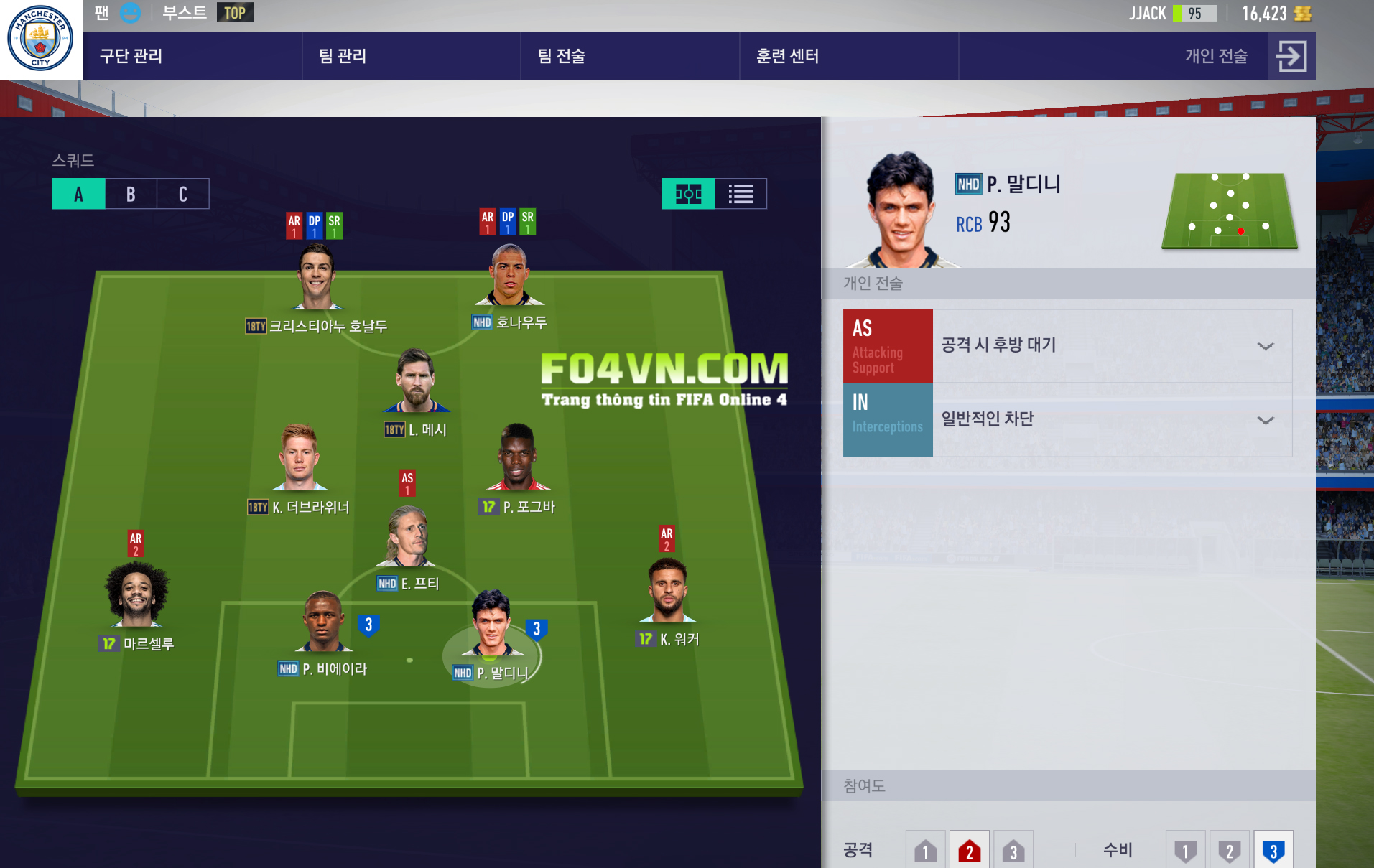 CAM,RCM,LCM: hãy để mặc định để các vị trí di chuyển thật đồng đều, dàn trải và xoay chuyển vị trí linh hoạt. Với sơ đồ này hạn chế tối đa việc áp đặt lối chơi lên các tiền vệ sẽ giúp các pha tấn công trở nên khó lường và nguy hiểm hơn.
